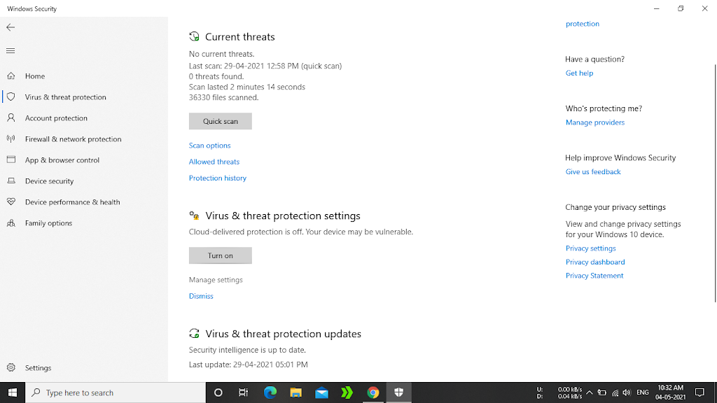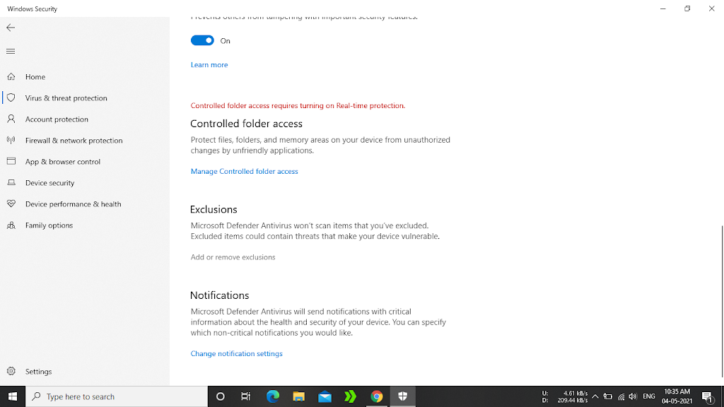 Step 5: Click on “Manage settings” under Virus & threat protection settings.