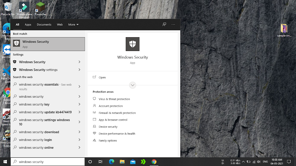 Step 3: Search for “Windows Security” in the Windows search bar and open the first link.