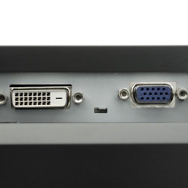 If you have both items, you need to connect your monitor to one end of the VGA cable. The port on the monitor will look like this: